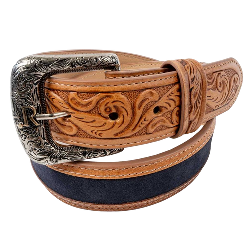 R Watson Men's Black Suede Underlay & Natural Lacing Belt