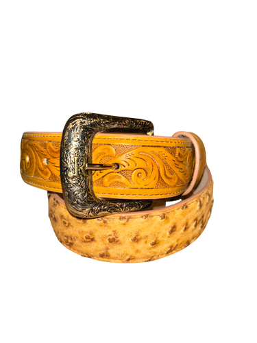 R. Watson Men's Antique Saddle Full Quill Ostrich Belt