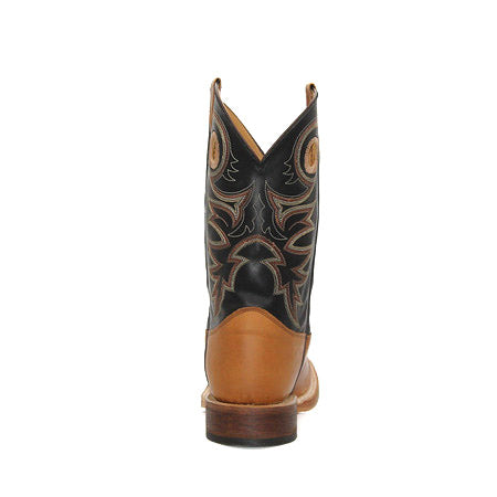 Caddo Copper Brown Bent Rail is an 11" tall Men's cowboy boot with a black spiral cowhide leather upper accented by a light golden brown stitch pattern.
