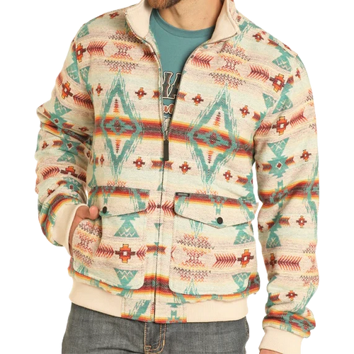 Rock & Roll Cream Aztec Jacquard Bomber Jacket