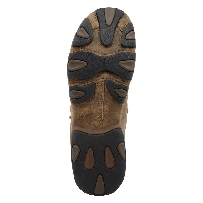 Integrated rice husk and molded rubber outsole made from repurposed agricultural byproduct, provides durability.