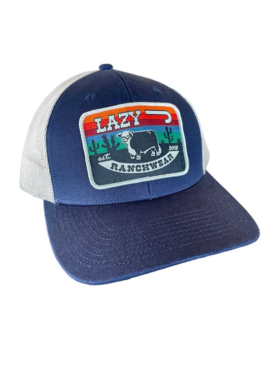 Lazy J Ranch Wear Navy & Tan Sunrise Cactus Bull Cap