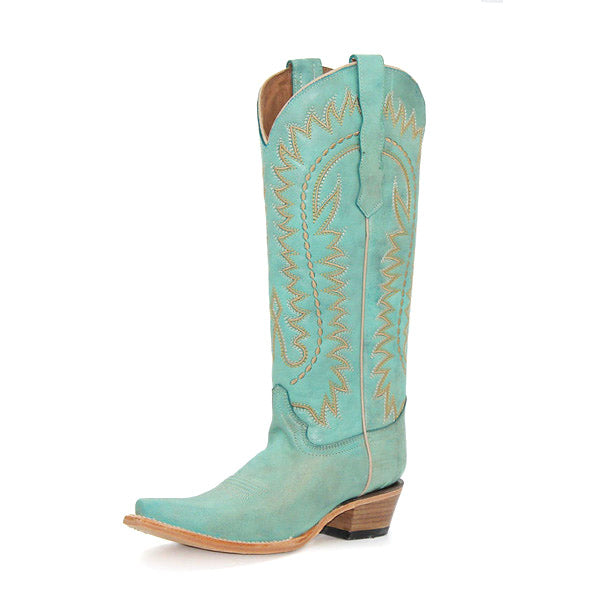 Circle G Ladies' Turquoise Embroidered Tall Top Boots.